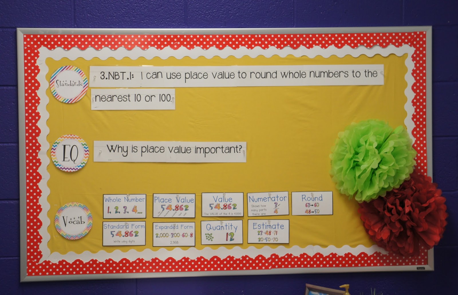This is another bulletin board that I’ll use as a focus wall. I was a little disappointed with the color of yellow I had, but I didn’t have an opportunity to get a different shade. Our floors weren’t ready until the very last second this year, so I had a very limited time to get ready.